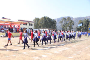 बुलिङटारको त्रिभुवन माविमा आयोजित राष्ट्रपति रनिङ सिल्ड प्रतियोगिता छनोटको उद्घाटनपछि मार्च पास गर्दै विद्यार्थी ।