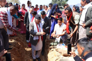 बुलिङटारमा मंगलबार विपी स्मृति भवन शिलान्यास गर्दै गण्डकीका मुख्यमन्त्री कृष्णचन्द्र नेपाली पोखरेल ।
