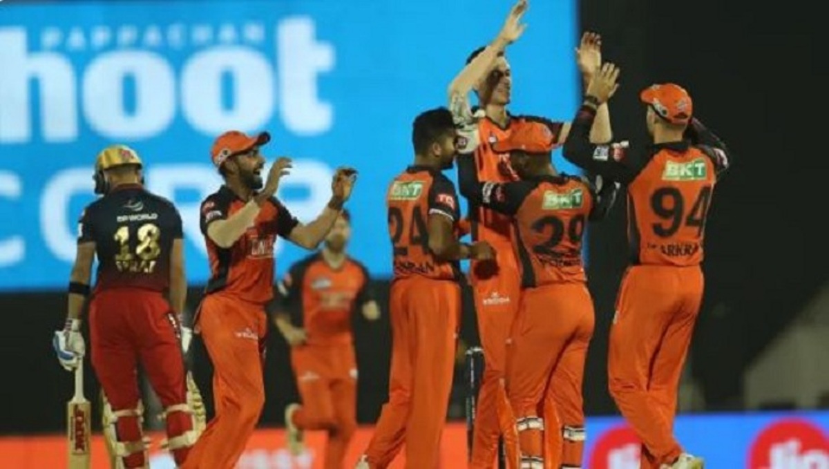 केन विलियम्सन १६ र राहुल त्रिपाठी ७ रनमा अविजित रहे । बेङ्ग्लोरका हर्सल पटेलले एक विकेट लिए । यसअघि पहिले ब्याटिङ गरेको बेङ्ग्लोरले १६ ओभर १ बलमा अलआउट हुँदै ६८ रन बनाएको थियो । बेङ्ग्लोरका सुयाश प्रभुदेशाईले १५ तथा ग्लेन म्याक्स्वेलले १२ रन जोडे ।
