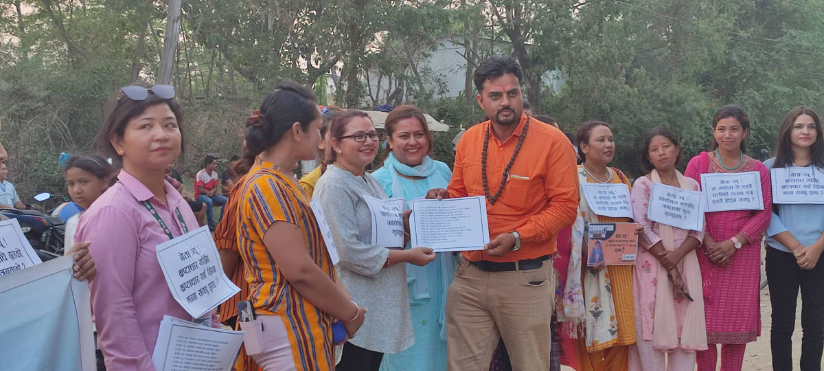 असल शासन क्लव बासले कोहलपुरमा आज आयोजना गरेको ‘नेता ज्यू, नागरिकको आवाज सुन्नुहोस्’अभियानमा मेयर पदका उम्मेदवार आचार्य र उपमेयर पदका उम्मेदवार सुवेदीले कोहलपुर नगरपालिकालाई भ्रष्टचारमुक्त बनाउने अभियानमा प्रतिबद्ध रहेको भन्दै हस्ताक्षर गर्नुभएको छ ।