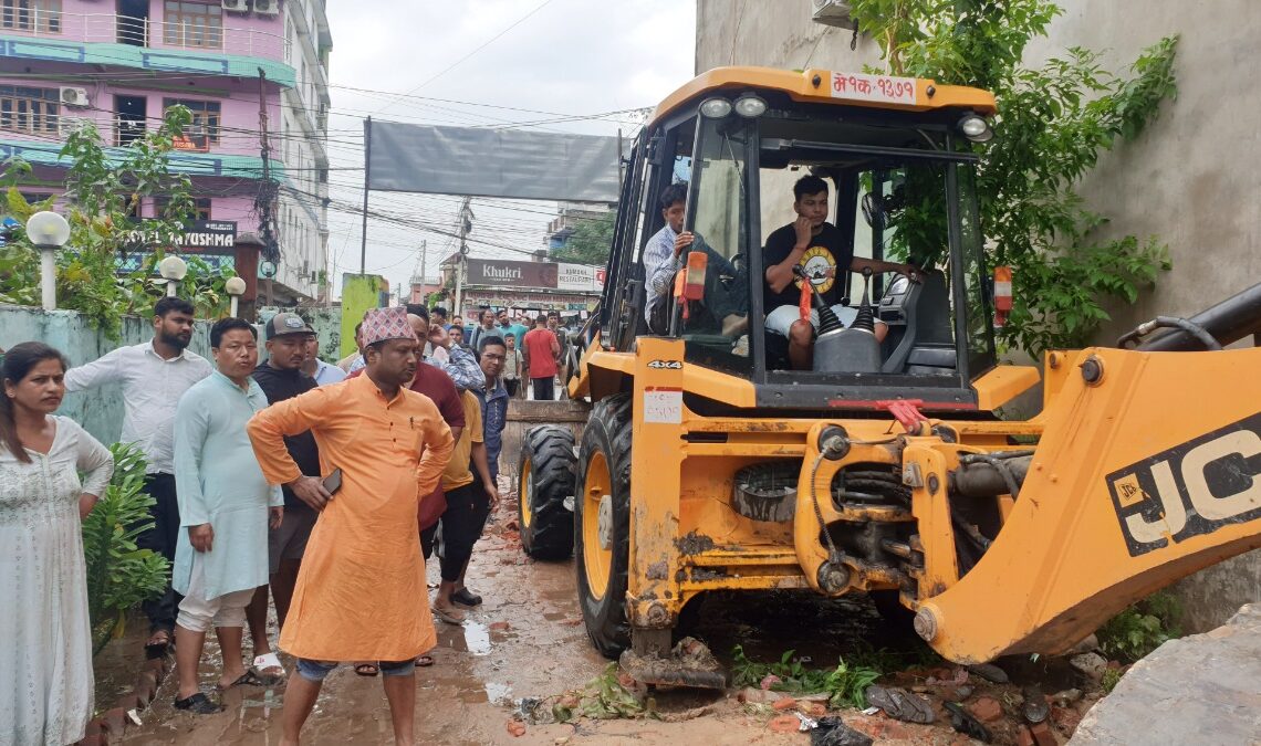 आज दिउँसो वडा नम्बर २ र ४ का विभिन्न बस्तीहरुमा पुगी अवरुद्ध नालाहरुलाई सहज निकास दिन जेसिबी प्रयोग गरिएको छ ।