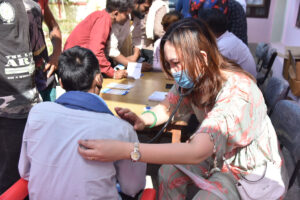 नेपालगन्ज उपमहानगरपालिका १३ स्थित जिल्ला निर्वाचन कार्यालय बाँकेको प्राङ्गनमा भएको स्वास्थ्य शिविरमा एक सय १० जनाको स्वास्थ्य परीक्षण गरिएको उनले बताए ।