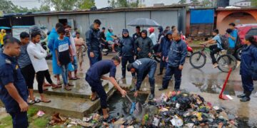 बाँके असार २३ गते । तीन दिन देखि निरन्तरको झरी छ । नेपालगन्जका विभिन्न स्थान जलमग्न छन् । अघिल्ला वर्षजस्तो नेपालगन्ज उपमहानगरपालिका डुवानमा छैन । तर वडा प्रहरी कार्यालय क्षेत्रमा भने डुवान देखिएको छ । डिएसपी रोडदेखि एमपी स्कुल, रानीतलाउ र तरकारी मण्डीलगायतका केही स्थानमा नाला सफाइ नहुँदा पानी वग्न नपाएर जलमग्न अवस्थामा भयो । … Continue reading वडा प्रहरी कार्यालयद्धारा नेपालगन्जमा नाला सफाई