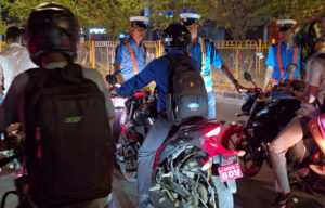 सडक दुर्घटना न्यूनिकरण गर्न रातको समयमा चेकजाँच गर्दै ट्राफिक प्रहरी : चालकलाई नमस्कार गर्ने अभियान सुरु