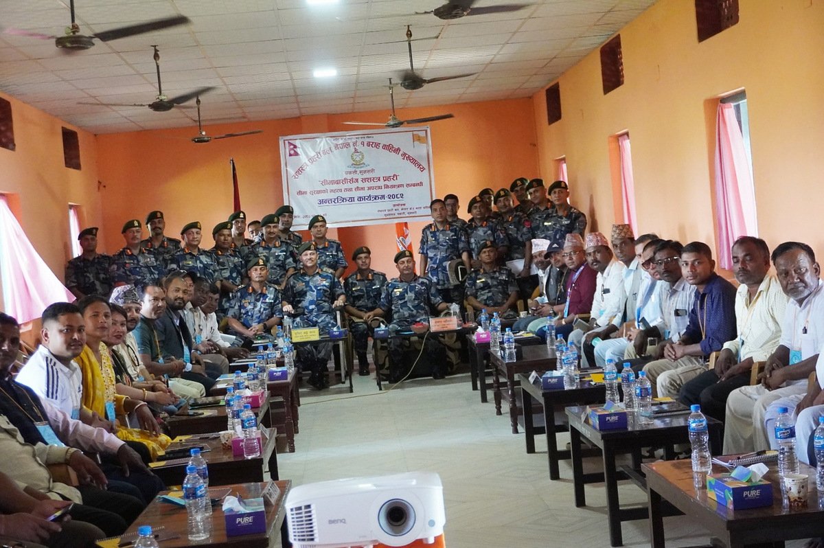 सशस्त्र प्रहरी बल, नेपाल नं १ बराह बाहिनी मुख्यालय पकली, सुनसरीले आज ‘सीमावासीसँग सशस्त्र प्रहरी’ अन्तक्र्रिया गरेको थियो । सो अन्तक्र्रियामा सीमा अपराध नियन्त्रणका लागि स्थानीय तहसँग सहकार्य गर्ने सशस्त्र प्रहरी वरिष्ठ उपरीक्षक सुधीरजङ्ग थापाले बताए ।