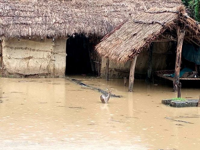 आइतबार बिहानबाट परेको अविरल वर्षाका कारण बाँकेको नरैनापुर ५ मटैहियाका एक दर्जन घर गोठ डुबानमा परेका छन् । बिहानैबाट भएको निरन्तरको वर्षाले गर्दा नरैनापुर ५ मटेहिया गाउँका ११ वटा घरहरु डुवानमा परेको मटेहियाका स्थानीय ज्ञान कनौजियाले बताउनु भयो ।