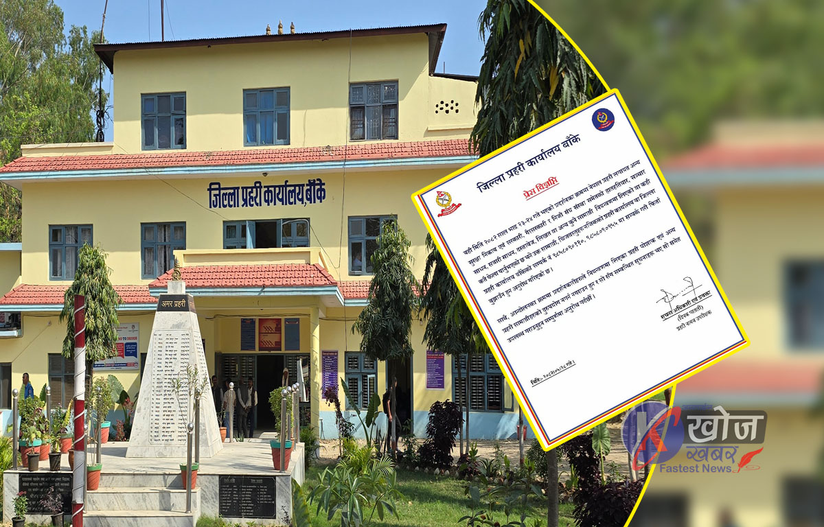 बाँके प्रहरीले जेन जी आन्दोलनको क्रममा खोसेर लगेको नेपाल प्रहरी तथा अन्य सुरक्षा निकायको हातहतियार फिर्ता गर्न आग्रह गरेको छ । जिल्ला प्रहरी कार्यालय बाँकेले शनिवार एक सूचना जारी गरि भाद्र २३ र २४ गते भएको प्रदर्शनको क्रममा प्रहरी कार्यालय तथा अन्य सरकारी कार्यालयको सुरक्षार्थ खटिएका सुरक्षाकर्मीसंग भएको हातहतियार खोसेर लगेको भए तत्काल फिर्ता गर्न आग्रह गरेको बाँके प्रहरी प्रवक्ता दिपक पातलीले जारी गरेको सूचनामा उल्लेख छ ।