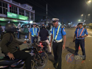 हिंजोआज रातको समयमा नेपालगन्जका सडकमा फरक सुनिन थालिएको छ – मोटरसाइकलदेखि अन्य सवारीसाधन अचानक रोकिने आवाज, ट्राफिकको सिट्टी, टर्चको उज्यालो र ‘कागजात देखाउनुस्’ भन्ने आवाज। सामान्य नागरिकलाई झस्काउने यी दृश्यहरू अहिले ट्राफिक प्रहरीका लागि दैनिक लय बनेका छन्।