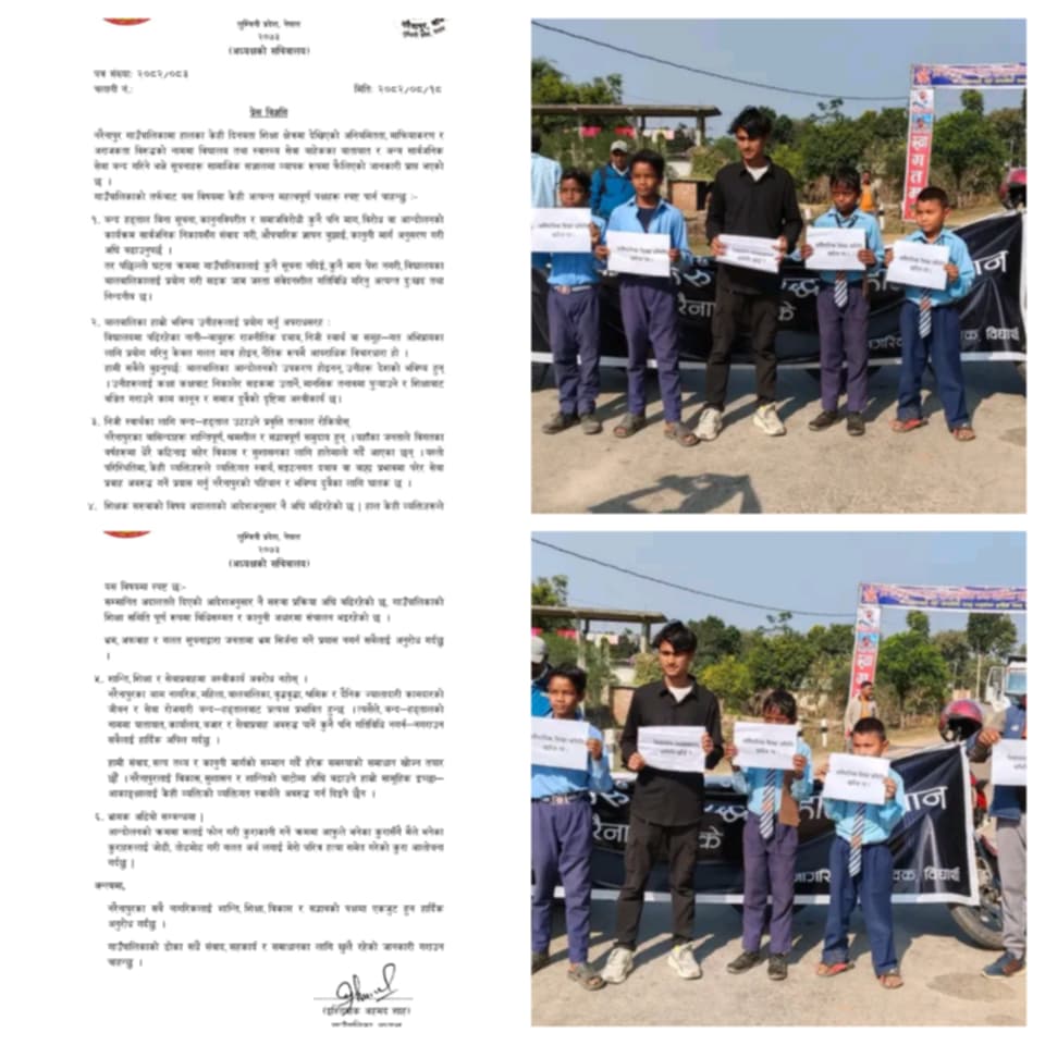 नरैनापुर गाउँपालिकाले शिक्षा र सार्वजनिक सेवा जस्ता संवेदनशील क्षेत्रमा अराजकता र भ्रम फैलाउने गतिविधि सह्य नहुने चेतावनी दिँदै, कानुनी प्रक्रियाअनुसार जिम्मेवार रूपमा संवाद र समाधानतर्फ आउन सबै सम्बद्ध पक्षलाई अनुरोध गरेको छ । गाउँपालिकाको शिक्षा समिति पूर्ण रूपमा कानुनी र प्रक्रियागत रूपमा सञ्चालन हुँदै आएको छ विज्ञप्तीमा भनिएको छ ।
