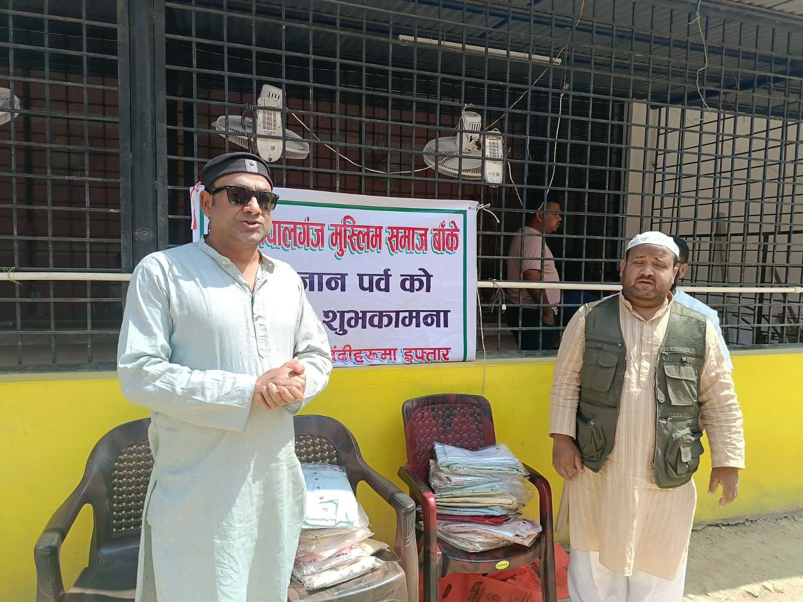 ईद पर्व शनिबार परेको सन्दर्भमा त्यसको पूर्वसन्ध्यामा नेपालगन्ज मुस्लिम समाजले कोहलपुरस्थित नौबस्ता कारागार तथा नेपालगन्ज कारागारमा रोजा बसिरहेका कैदीबन्दीहरूलाई ईदको उपहारस्वरूप कपडा प्रदान गरेको समाजका अध्यक्ष अब्दुल हकीम हल्वाईले जानकारी दिए।